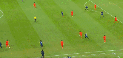 第30分钟,国足前场鬼怪断球,林良铭低射被挡出底线。