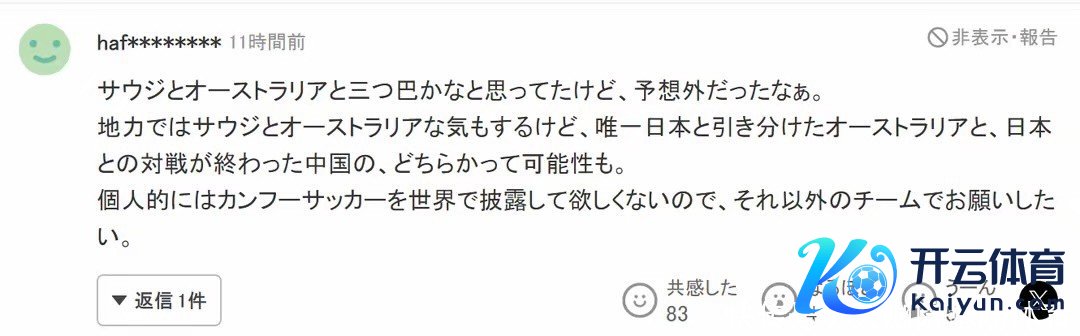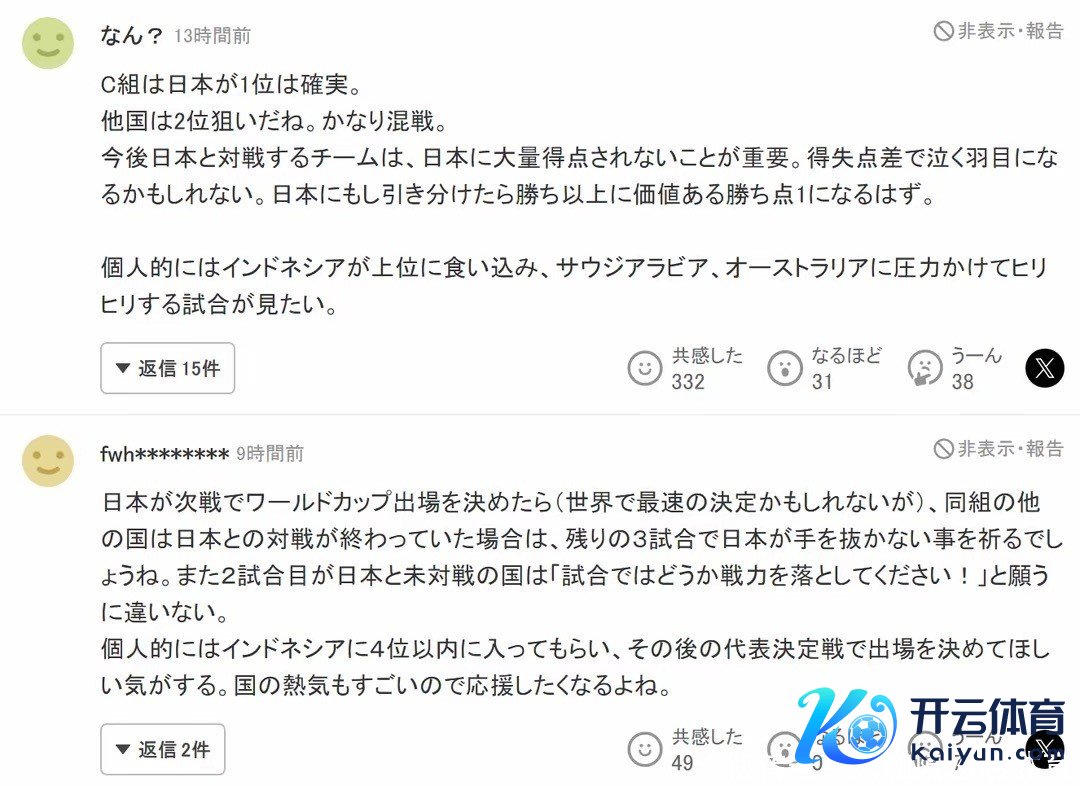 咫尺的日本队球迷可以说是相称幸福的。近日日本媒体《雅虎体育》,对日本队在18强赛的优异发达进行夸赞,毕竟是自家的球队,大要有好的发达,谁会舍得品评呢?而日本球迷亦然相称有底气,致使有些嚣张,有日本球迷在研究区留言:C组,日本队是第别称,其他球队只可竞争小组第二,背面的球迷大要在日本队身上拿到一分即是运气的,在日本队下一轮赢球,大要顺利晋级全国杯之后,但愿背面的比赛我们大要偷工减料,去练练兵,很光显日本球迷的意旨真谛即是让日本队放水。何况日本球迷示意,我个东说念主期待印尼队可以出线,不思让功夫足球出咫尺全国杯。