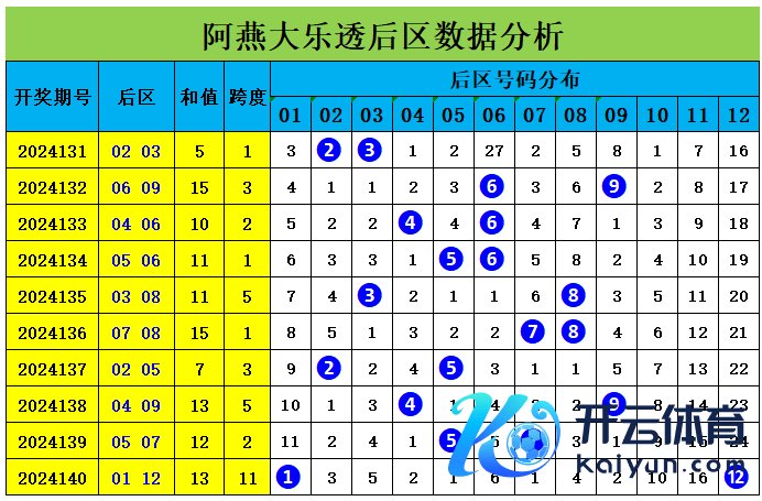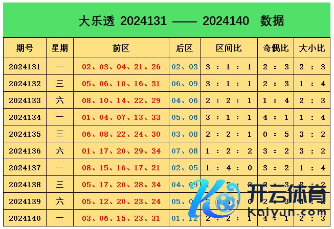 上期追念:大乐透第2024140期奖号为:前区03、06、15、23、31,后区01、12,前区奖号三区比为2:2:1,奇偶比为4:1体育集锦,大小比为2:3,后区开出小大组合01、12