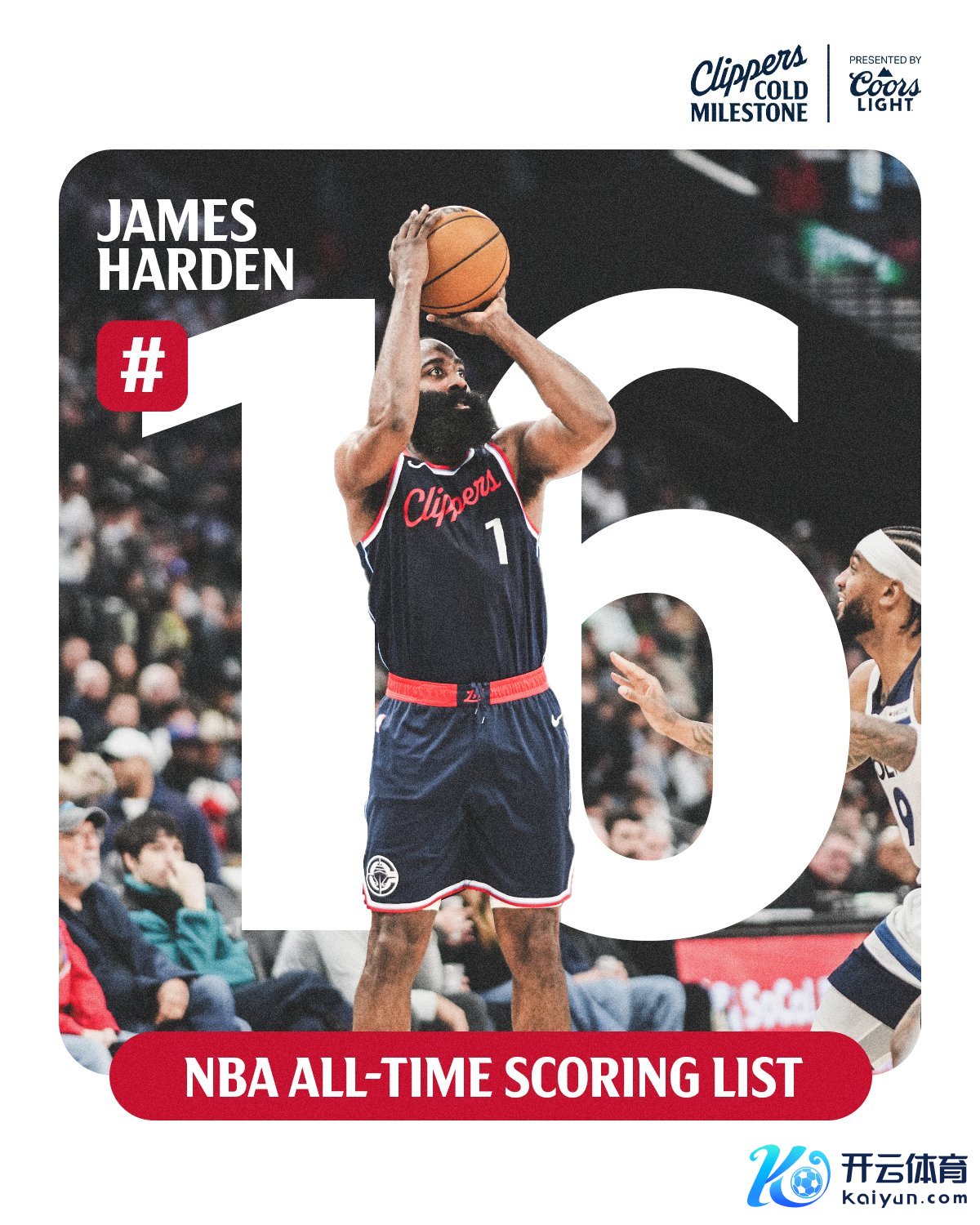 本场比赛哈登取得19分8篮板3助攻1抢断1盖帽,生存总得分(26503分)特等邓肯(26496分),升至NBA历史第16位!