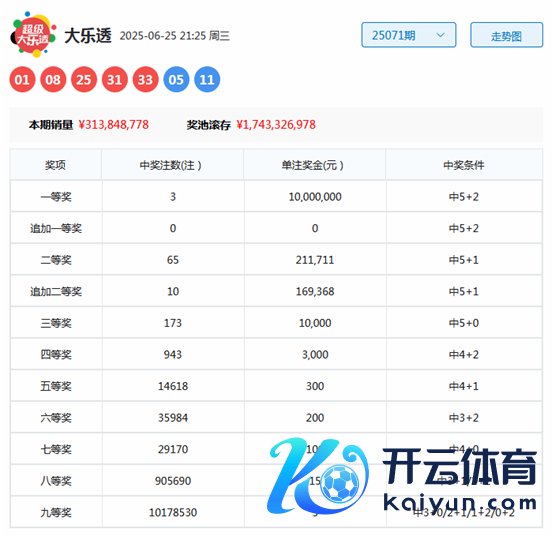 大乐透第2025071期开奖号码为:01、08、25、31、33+05 11。其中前区奖号三区比为2:0:3,奇偶比为4:1体育录像/图片,包含1个重号:08,后区散播在二、三区。