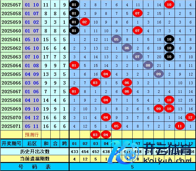 后分袂析【一区01-04,二区05-08,三区09-12】:上期后区奖号为05和11,分别落在第二、三区,近50期后区三区比为36:34:30,近10期三区比为6:6:8,本期重防第一区号码大热,精选两码03+04。