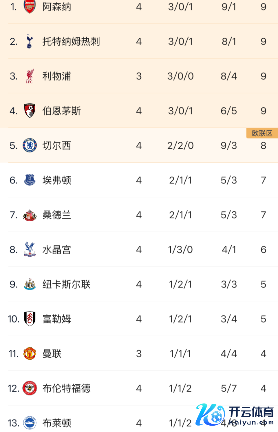 北京本事9月14日凌晨,新赛季英超截至了第4轮多场较量。切尔西爆冷2-2被布伦特福德逼平跌出积分榜前4名;而热刺则客场3-0大捷后积分追平阿森纳。