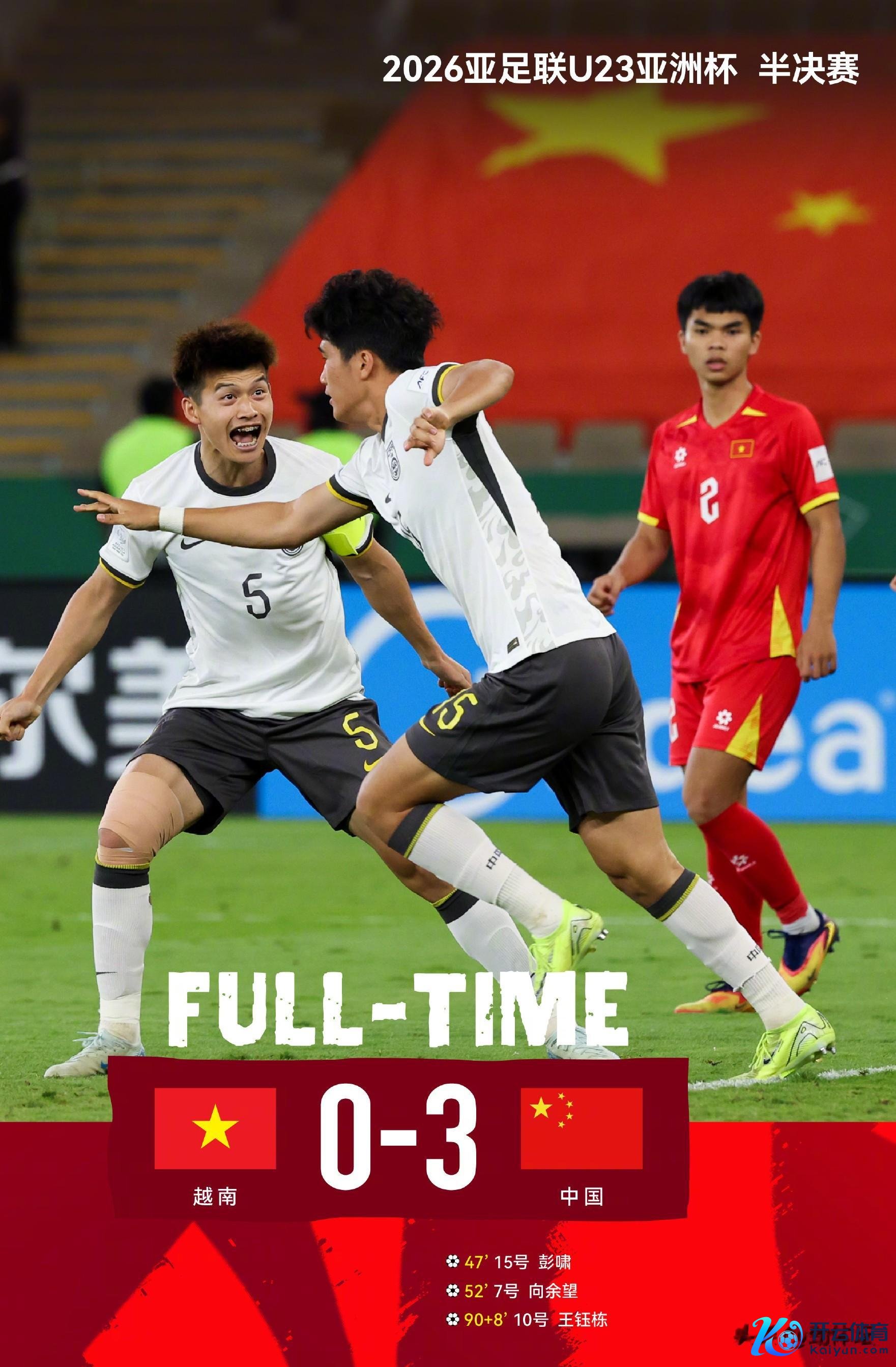下半场中国队还是占据场上主动,况且很快收到成效。中国队再次通过定位球的契机蹂躏场上僵局。第47分钟中国队得回角球的契机,彭啸再次立功,这亦然他本届赛事的第二粒进球。进球后的中国队在厚实留意的基础上,延续向对方施压,5分钟后,向余望在禁区前沿回身抽射破门,比分来到2:0。而后,中国队走马换将,以留意为主。比赛终末时刻,拜合拉木助攻王钰栋破门,中国队锁定胜局。