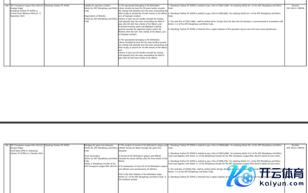 其次在10月2日客场对阵神户得胜船时,泰山球员和责任主谈主员队裁判进行烦躁罚金56750好意思元。