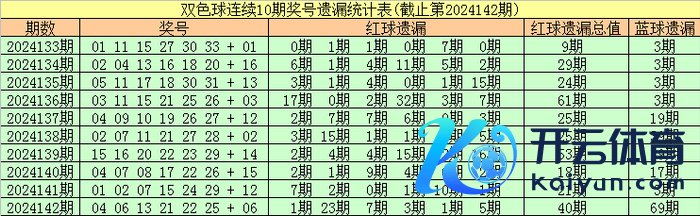 末端双色球第2024142期,最近10期红球遗漏总值分辨为:9期、29期、24期、61期、25期、25期、53期、18期、21期、40期,上期遗漏总期数偏高。