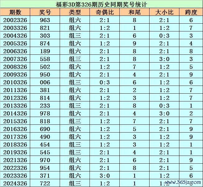 福彩3D积年第326期同时奖号为:963 821 303 874 189 558 502 950 006 381 814 233 978 818 690 490 454 545 970 954 371 722。