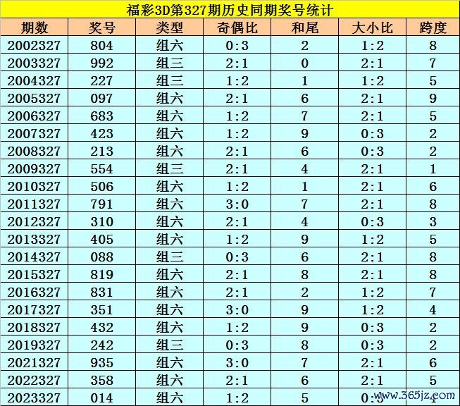 福彩3D从2002年开奖于今已开出了8131期奖号了,本期为2024年第327期开奖,历史上第327期已开出21次奖号了: