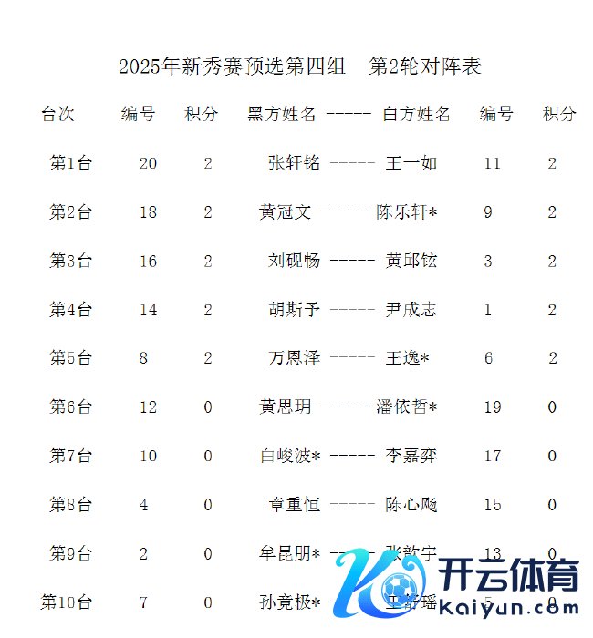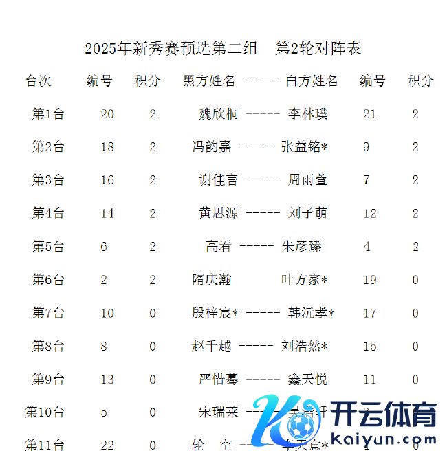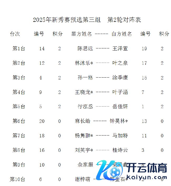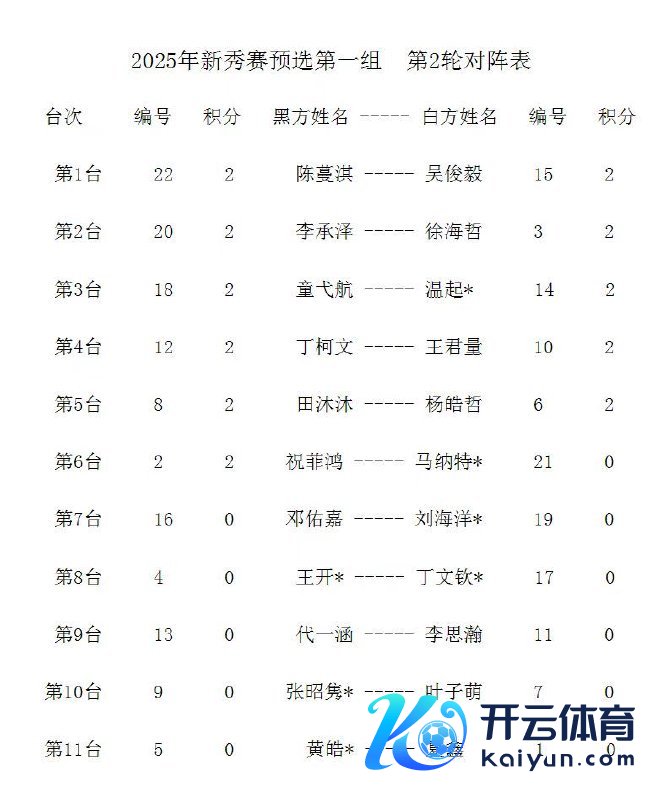 2025博想软件杯少壮预选赛首轮比赛在北京棋院战罢;各组第二轮将于下昼三点继续进行体育录像/图片体育录像/图片,具体对阵如下: