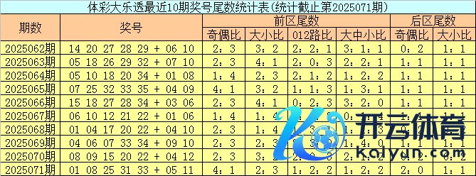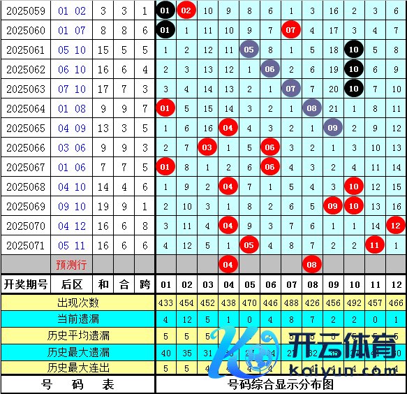 上期回归:体彩大乐透第2025071期开出号码:01 08 25 31 33 + 05 11,其中前区奖号余数奇偶比为4:1,大小比为2:3,012路比为1:2:2,大中小比为1:2:2体育赛事直播,后区奖号余数奇偶比为2:0,大小比为1:1。