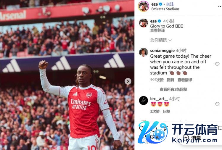 埃泽在本场比赛首场代表阿森纳首发,并送出了1次助攻,他在酬酢媒体上晒出了赛场照,配文写说念:“荣耀归于天主。”