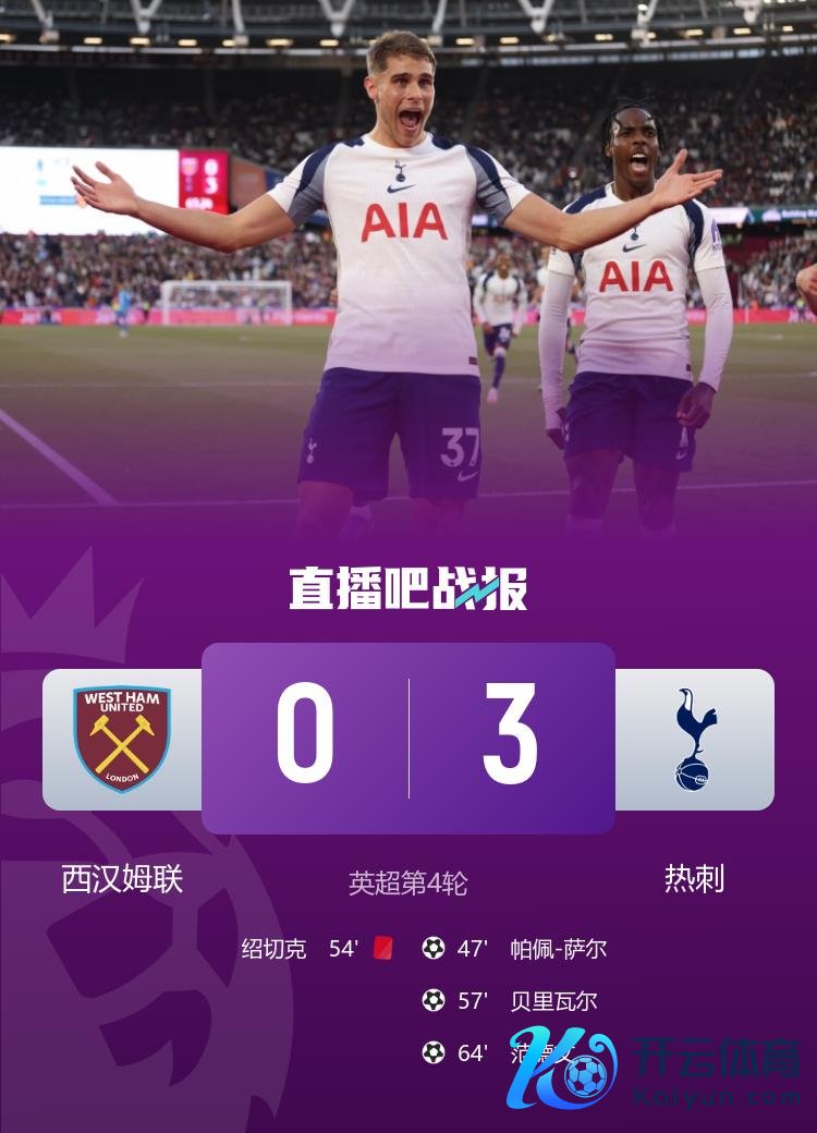 直播吧9月14日讯 数据败露,热刺队史初次在英超客场赢西汉姆联3球及以上。