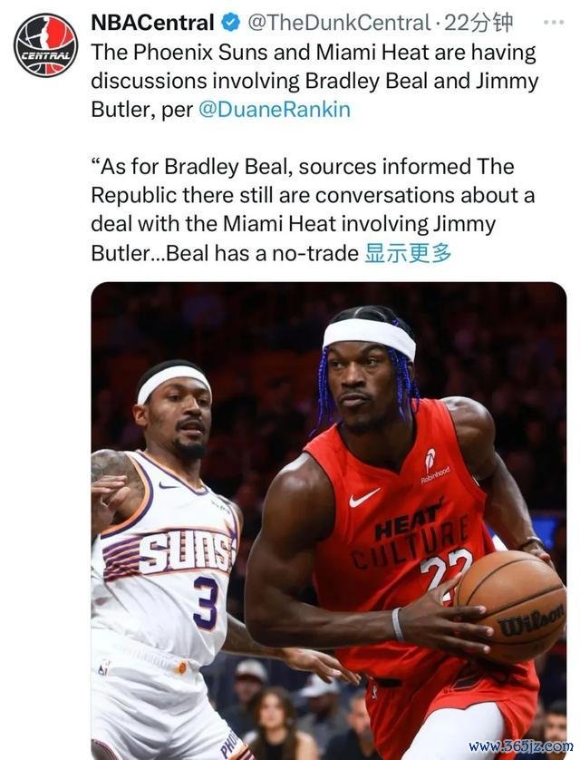太阳方面但愿用比尔,而非布克或杜兰特,从热火挖来巴特勒。