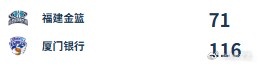 福建金篮 71-116 厦门银行,厦门女篮五东谈主得分上双,谢泼德21分,赖婷艺19分,彭诗晴13分9助攻,李艺萍11分,蔡亚飞10分7篮板。福建女篮王慧紫13分,杨蕊12分,布莱兴·埃吉奥福11分6篮板。