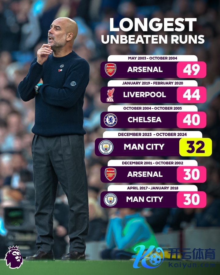 4、曼城:32场,2023.12-2024.10