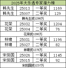 大乐透群众后劲榜则是统计了群众的近期收货,如上表所示,2025年开年于今,3个多月的工夫内,依然有多位群众射中过两次大乐透大奖,其中4位最为出色,永诀是韩先生、花荣、林啸、宋阳国,他们齐永诀射中了1次一等奖和1次二等奖,揽下奖金永诀为1298万、1280万、1278万、1237万,本年运势澈底的众位群众念念必也念念在大乐透大派奖中再下一城!