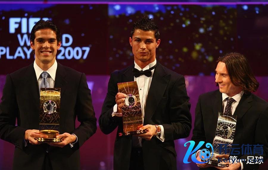 而在前一年,也便是2007年,卡卡夺得了寰球足球先生和金球奖,寰球足球先生排行中,梅西位列第二名,C罗第三名;金球奖排行中,C罗位列第二名,梅西位列第三名。不错说,卡卡的金球奖含金量完全,力压C罗和梅西呢。