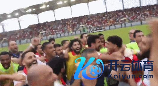 在马拉博畅通场,突尼斯全队苟且拥抱庆祝!这是绝杀全取 3 分,更是通往 2026 年寰宇杯的门票。