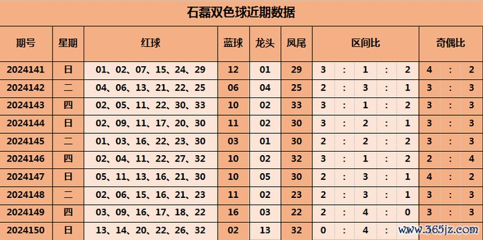 上期回来,上期开出奖号:红球13、14、20、22、26、32,蓝球02;当期红球号码龙头13,凤尾32,三区比为0:4:2,奇偶比为1:5。