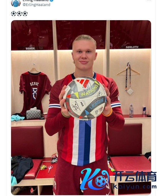 11月19日讯 欧国联对阵哈萨克斯坦,挪威获得了5-0的大捷。本场比赛,挪威时尚哈兰德献技帽子戏法,这亦然他工作生存第25次作念到。