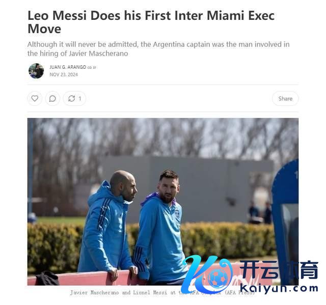 马斯切拉诺出任迈阿密外洋主帅,这是否有梅西的参与?11月23日,南好意思记者Juan Arango给出明确谜底:尽管不会有东谈主承认这少许,但事实是,梅西初次以高管的身份,参与俱乐部的决议。