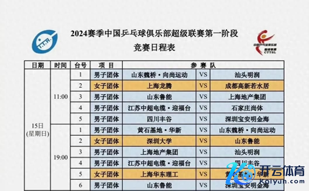 北京时辰12月15日,2024年中国乒乓球超等俱乐部联赛第4个比赛日,一共将进行11场比赛,其中有7支球队需要中午和晚上进行两场比赛。比赛的节拍和强度也将进一步飞腾。