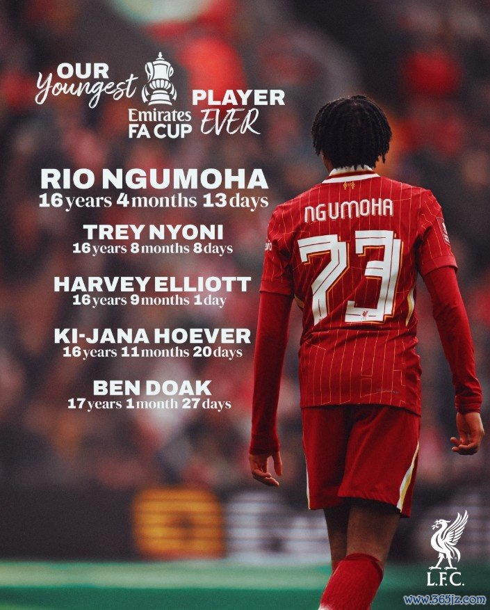 01月11日讯 足总杯第3轮,利物浦主场4-0校服阿克灵顿,今天16岁135天的恩古莫哈首发出战71分钟。恩古莫哈也成为利物浦队史足总杯最年青的出场球员。