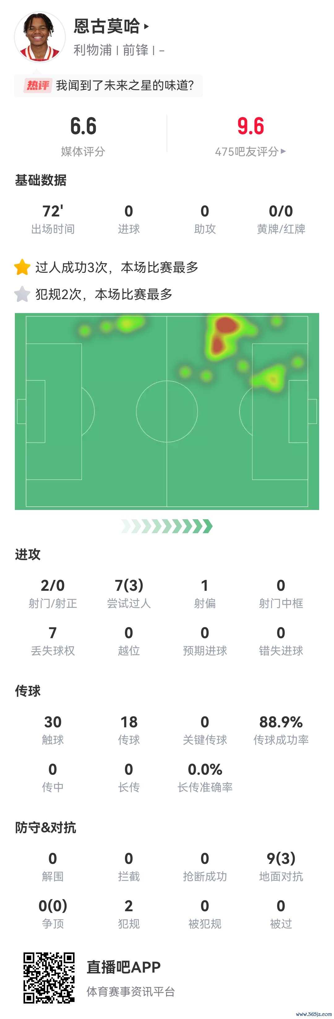 本场比赛恩古哈莫在场上弘扬积极,勇于拿球阻滞,但在经管球的合感性和比赛素养上还有所欠缺。