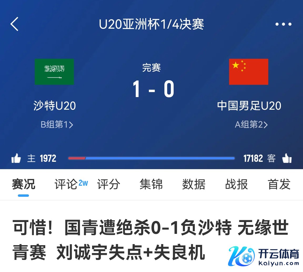 而在本届亚青赛中,国青恰是输给了晋级决赛的两支球队。在小组赛中,国青1-2不敌澳大利亚U20,无缘小组第一,在随后的1/4决赛中,国青又0-1不敌沙特U20,停步8强,同期也失去了本年世青赛的门票。