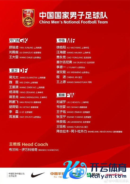 此外,抨击手还有张玉宁、王子铭、林良铭、韦世豪、拜合拉木。而在中场球员中,两名国安球员曹永竞和塞尔吉尼奥齐是偏重组织和要紧,广阔抨击手的加入,传递出伊万将要在这两场比赛加强要紧的信号。